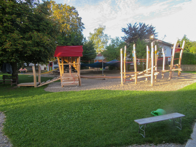 Die Kindertagesstätte verfügt über eine große Gartenfläche, die den Kindern die Möglichkeit bietet, sich nach Lust und Laune auszutoben („Bewegung ist das Tor zum Lernen“).